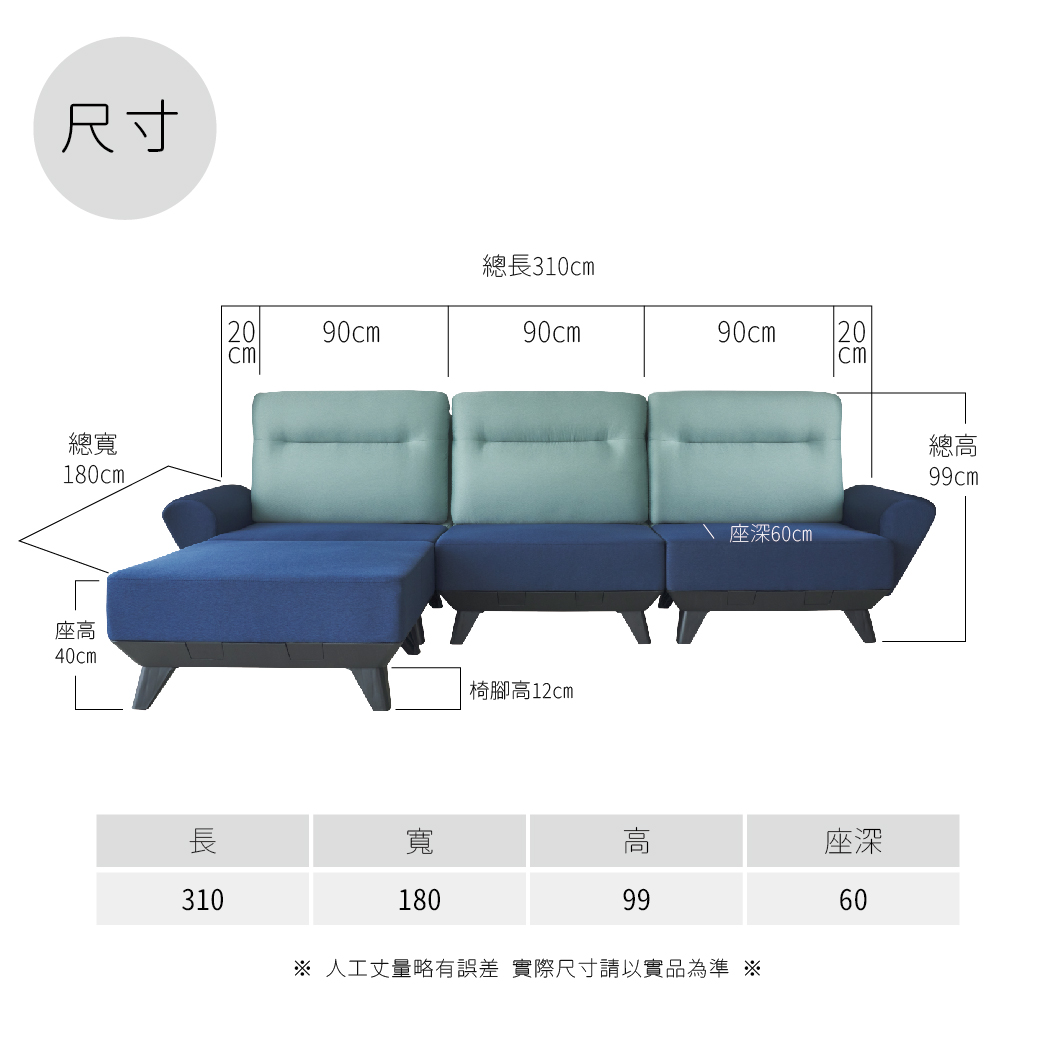 尺寸:長310 寬180 高99 座深60 CM