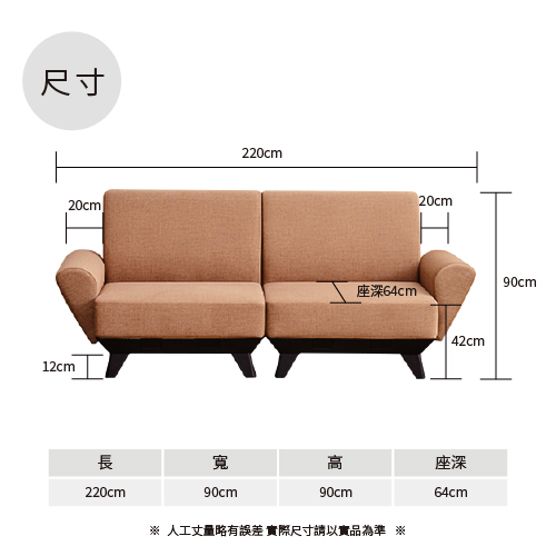 尺寸:長220 寬90 高91 座深64 CM