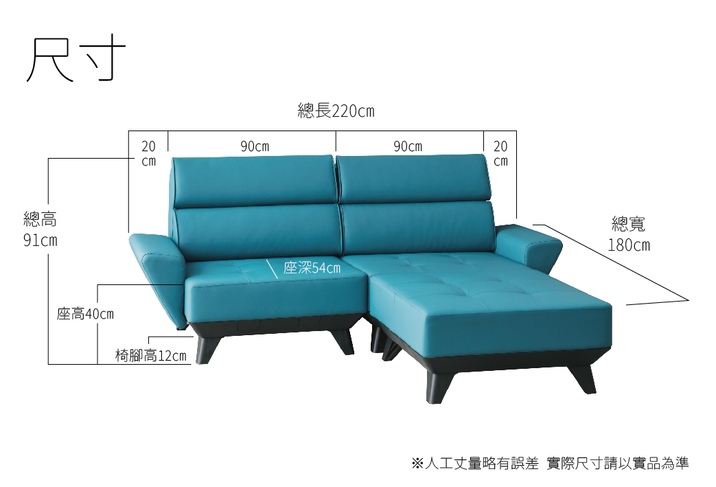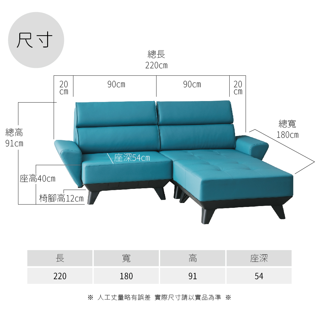 尺寸:長220 寬180 高91 座深54 CM