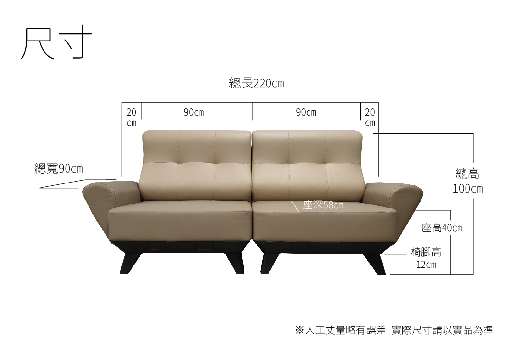 尺寸:長220 寬90 高100 座深58 CM